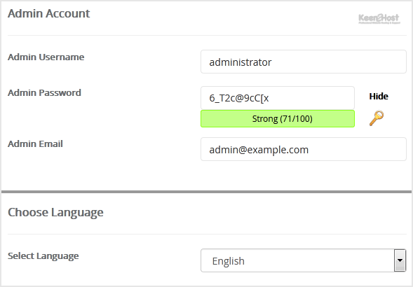 • Admin Username: Your new Website Baker username (for security reason do not use the Administrator or the Admin username.)