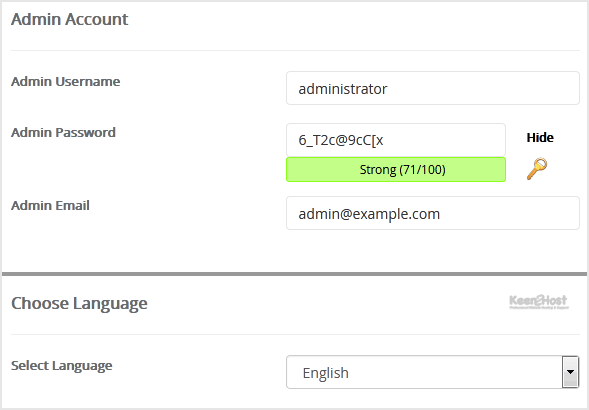 • Admin Username: Your new Plikli CMS username (for security reason do not use the Administrator or the Admin username.)