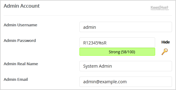 • Admin Real Name: Leave this as it is or use your full name.