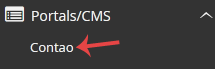 4. On the left side of your screen, you should locate the Portal/CMS category. Click on it and then click on the Contao link that will appear.
