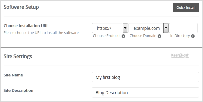 - Choose Installation URL: Choose the appropriate protocol/domain. Inside the "In Directory" field, should you want to install this in a directory, i.e., example.com/directory, enter the directory name. Otherwise, leave it blank to install in your main domain, i.e., example.com