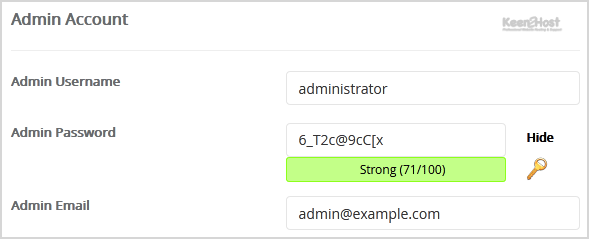 - Admin Username: Your new Anchor username (for security reason do not use the Administrator or the Admin username.)
