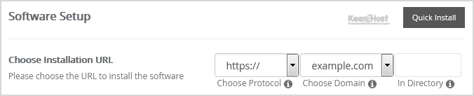 • Choose Installation URL: Choose the appropriate protocol/domain. Inside the "In Directory" field, should you want to install this in a directory, i.e., example.com/directory, enter the directory name. Otherwise, leave it blank to install in your main domain, i.e., example.com