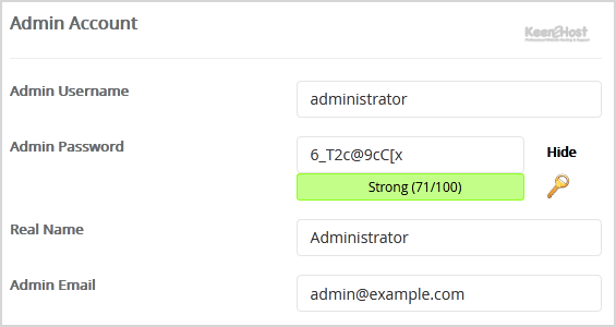 • Admin Username: Your new Saurus username (for security reason do not use the Administrator or the Admin username.)