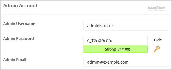 • Admin Username: Your new Typesetter username (for security reason do not use the Administrator or the Admin username.)
